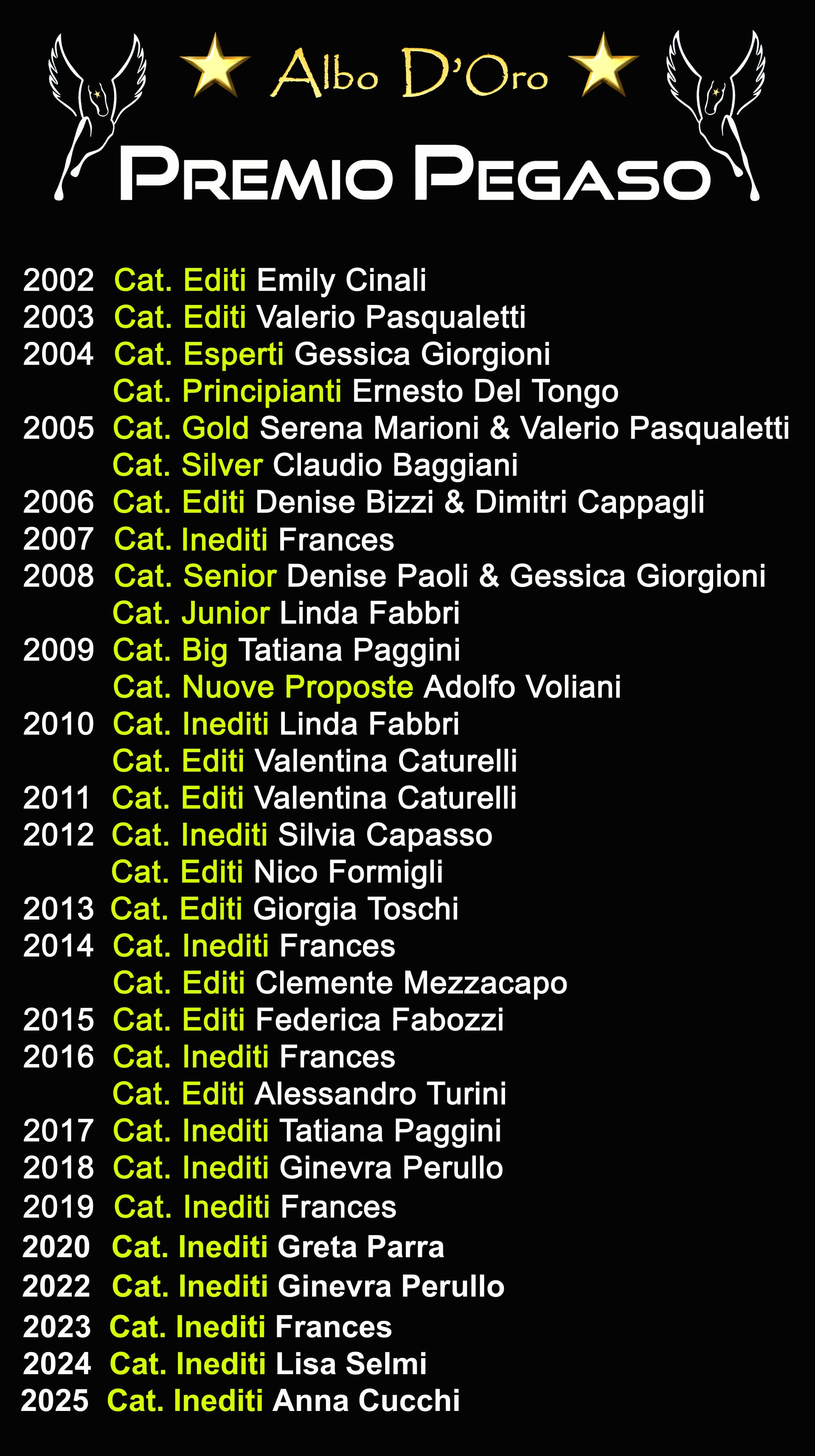 Albo d'Oro premio Pegaso